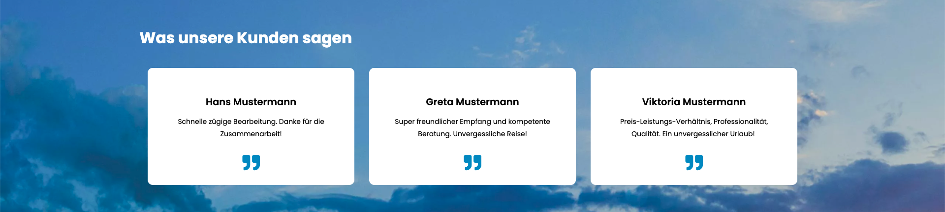 In der Ansicht der Seiten werden die Testimonials folgendermaßen angezeigt: