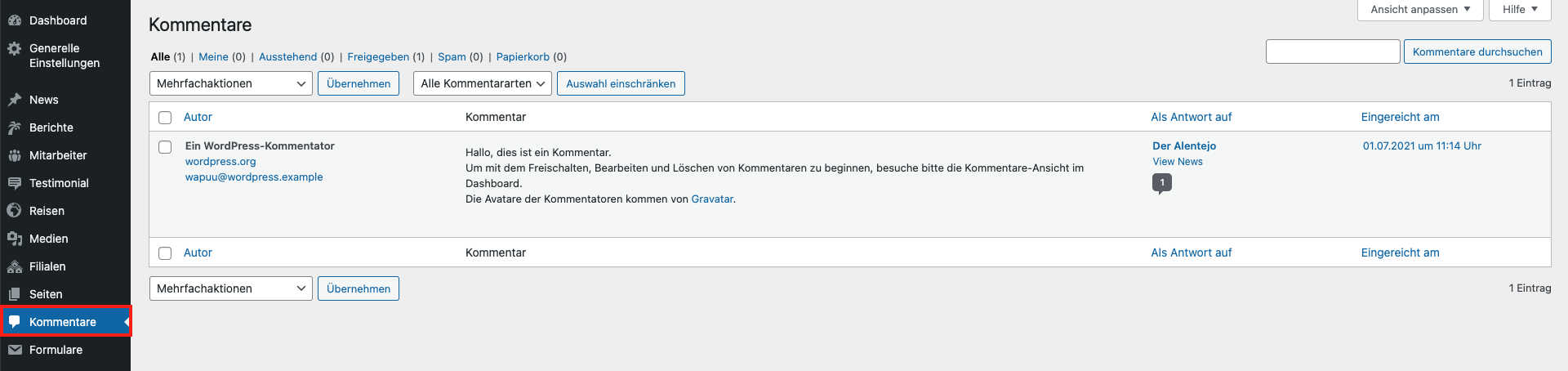 Die News erscheint erst in den Modulen von anderen Seiten, sobald sie veröffentlicht ist (gespeicherte News sind lediglich Entwürfe).