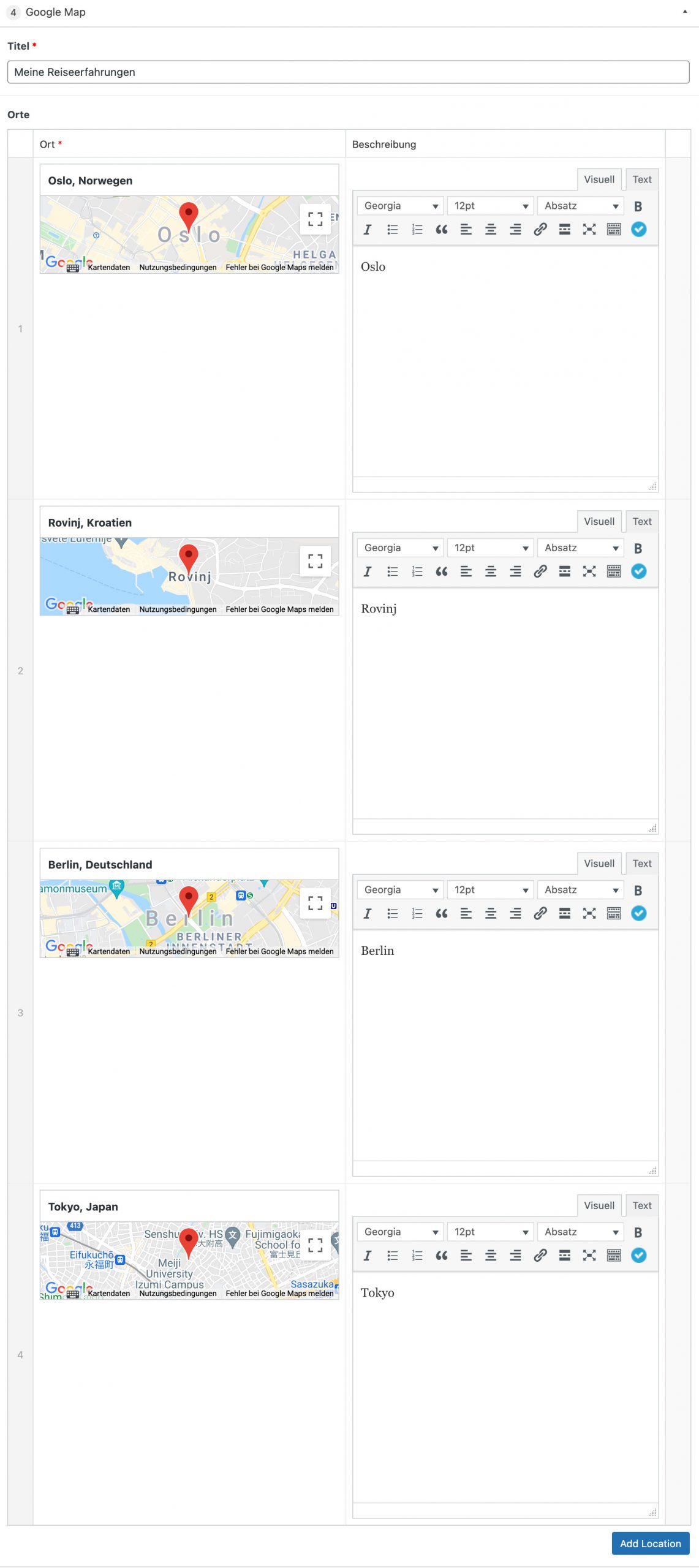 Bei diesem Modul können Standorte definiert werde, welche in einer Karte angezeigt werden.