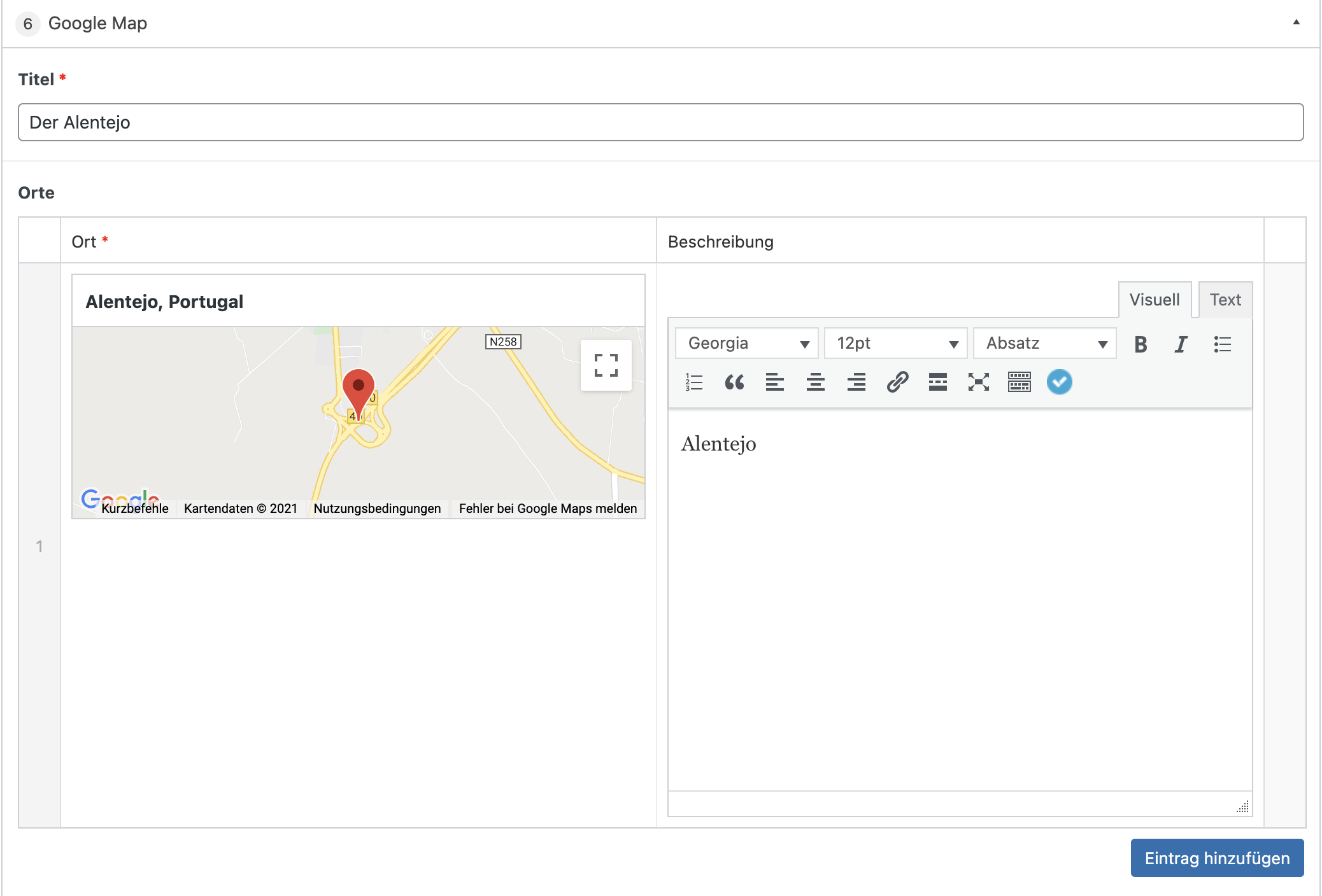Bei diesem Modul können Standorte definiert werden, welche in einer Karte angezeigt werden.